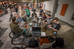 FIRST teams at the 2018 FRC Kick Off at SOFWERX.