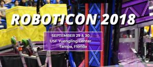 On September 29 & 30, the Foundation for Community Driven Innovation will host the 6th Annual ROBOTICON Tampa Bay K-12 STEAM Showcase and FIRST Robotics Competition off-season event at the University of South Florida Yuengling Center. At ROBOTICON, nearly 1000 students, plus their teachers, coaches, mentors and families from around Tampa Bay and Florida will come together to learn while they play, and show guests – over 1500 last year – the power of hands on, mentor-supported STEAM education.