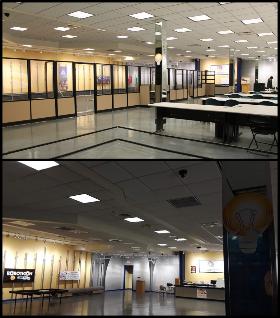 - The FIRST Robotics Competition field carpet and perimeter have been installed