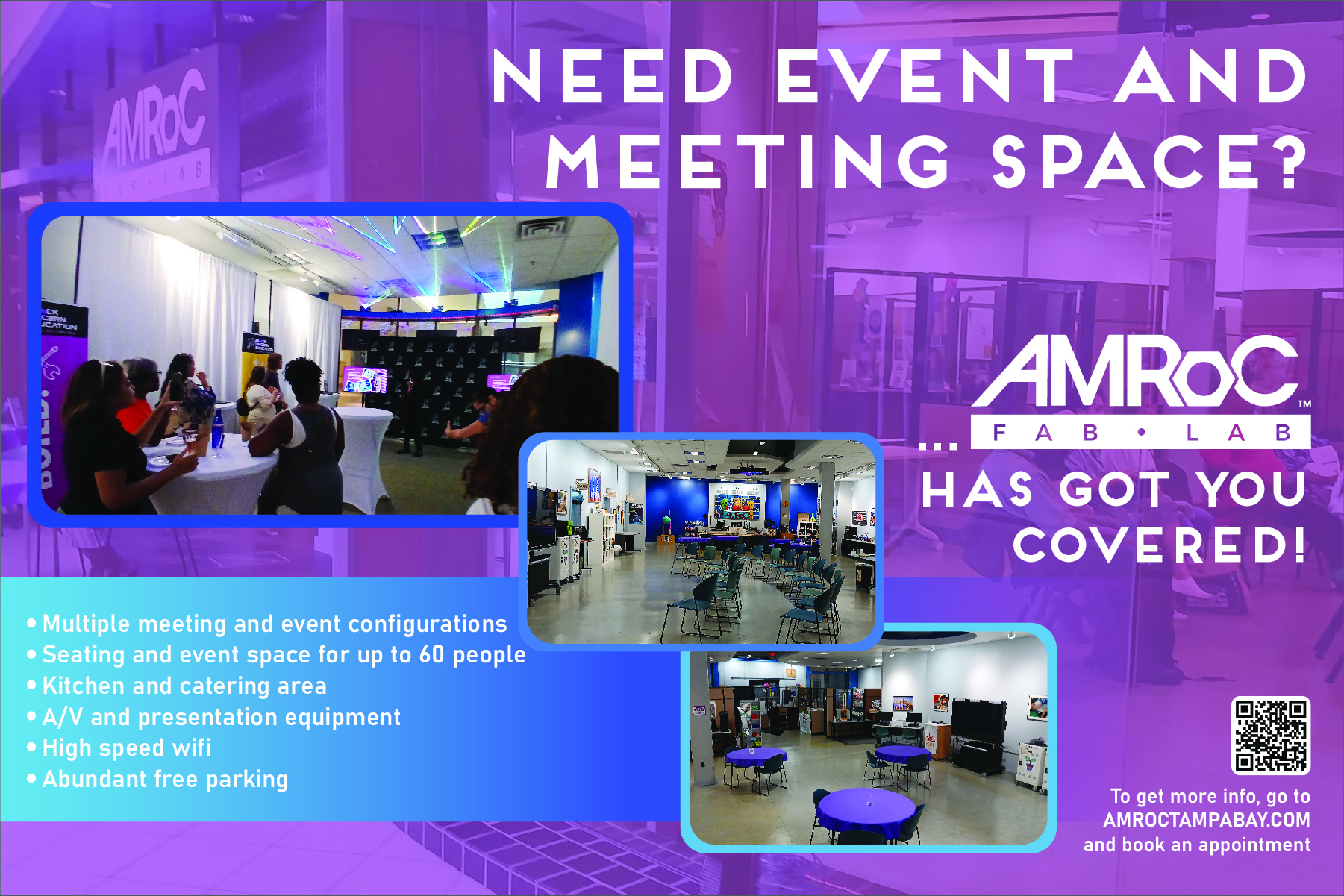 AMRoC Fab Lab is available for meeting and event space use, as well as machine shop, studio and co-work